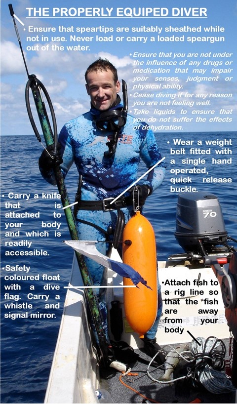 These safety rules are intended to minimize the risk of injury or mishap to divers engaged in spearfishing. Divers are encouraged to adopt these rules without exception and to promote them amongst divers who may not be familiar with them. It is the responsibility of all participants to make our sport as safe as possible.
